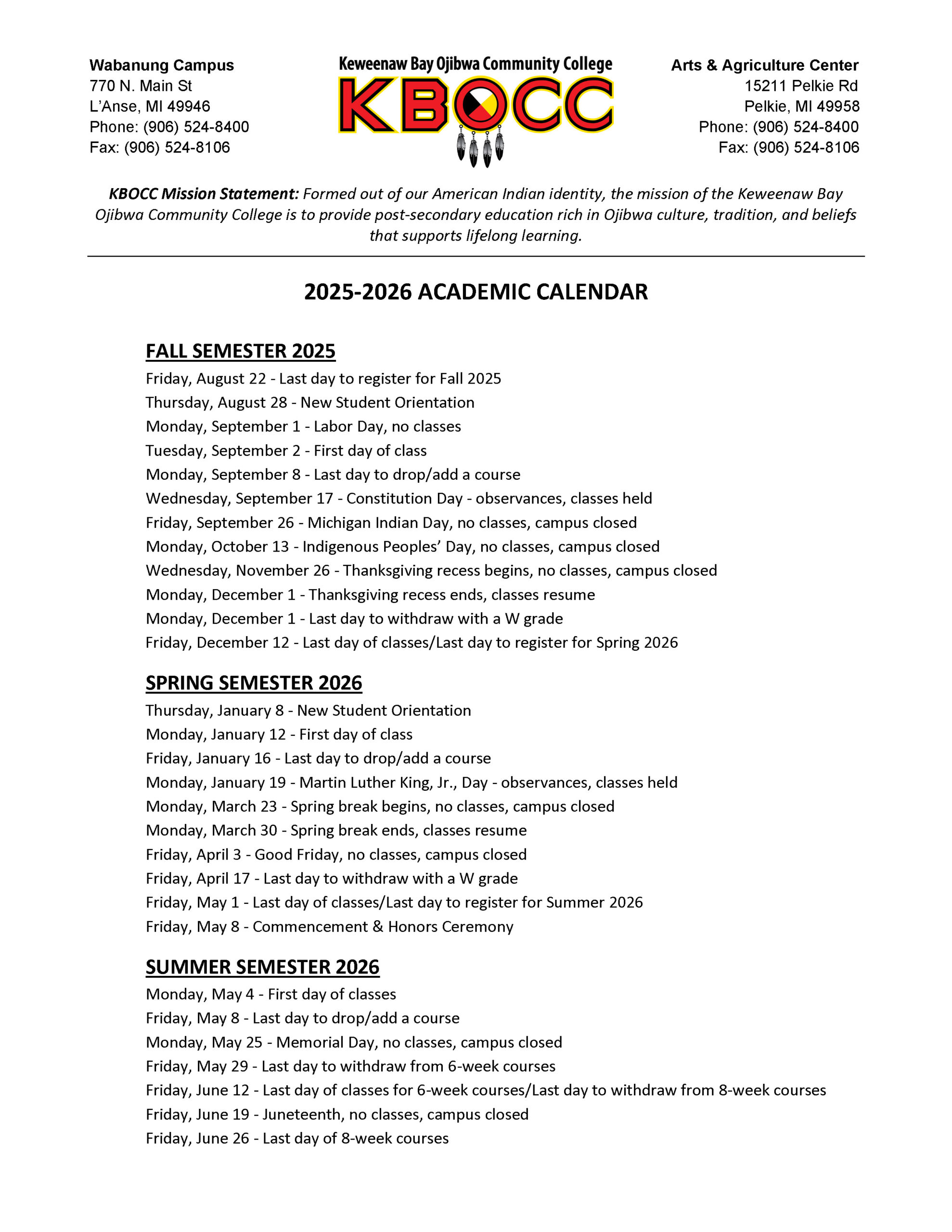 Academic Calendar